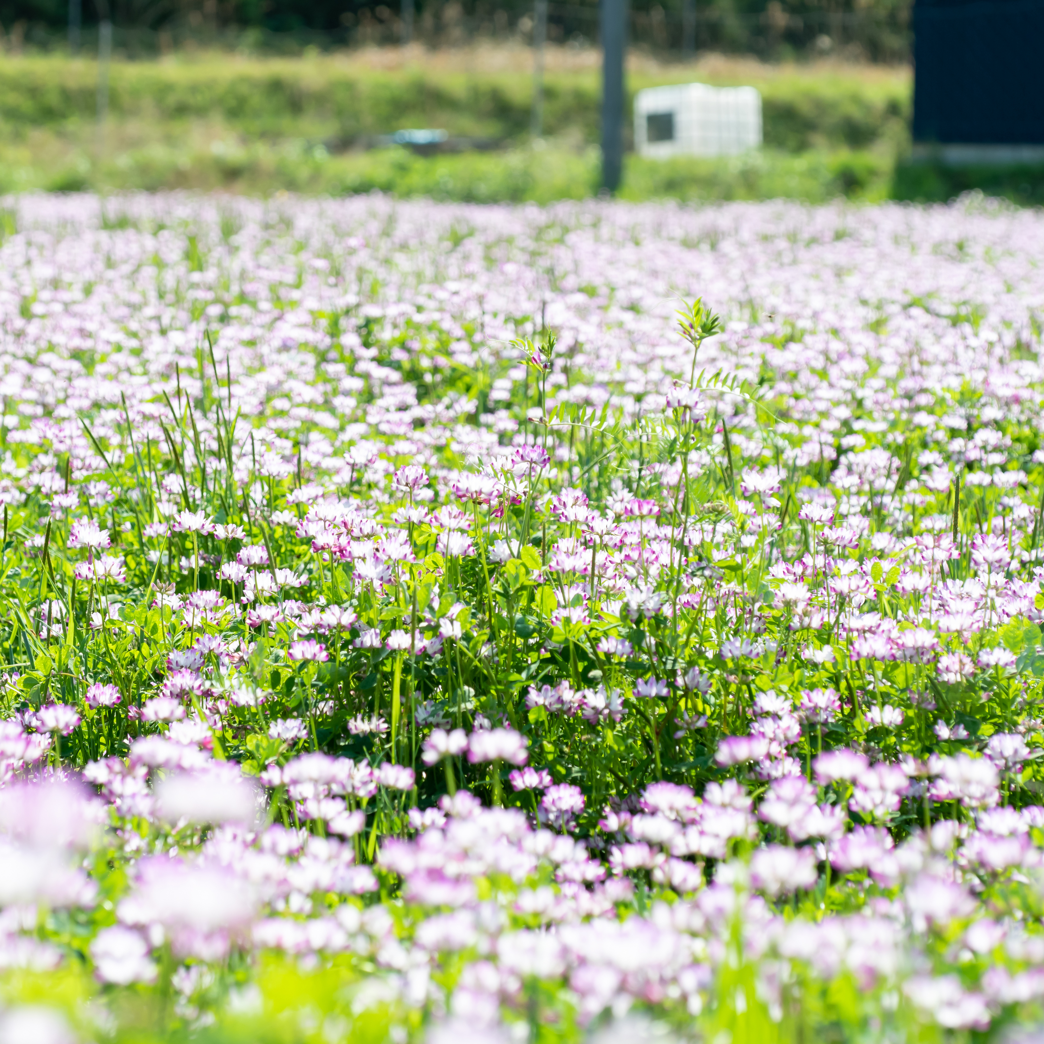 収穫が終わった田んぼにレンゲを咲かせ、そのまますき込むことで土に還し、肥料にする「緑肥」を活用してつくられたお米です。このお米を通じて、農家から販売店、消費者へと想いが巡り、やがて産地へと還元される「循環」「サイクル」をコンセプトにした兵庫県加西市産のお米です。